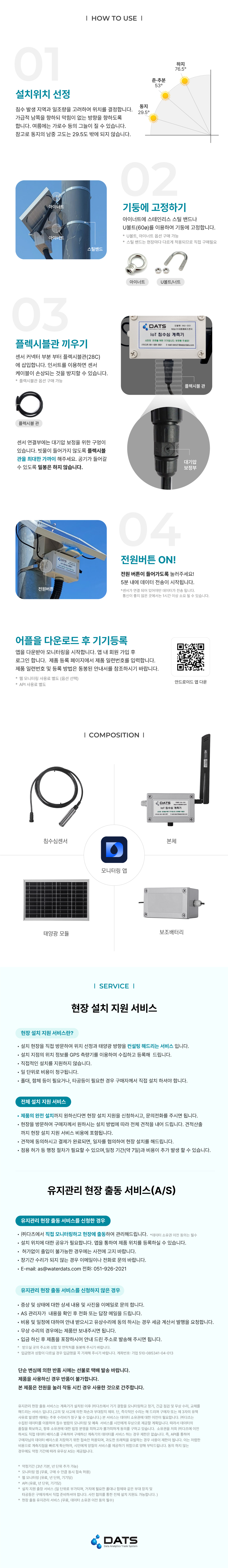 IoT 침수심 계측기는 도로, 지하차도, 저지대 등 침수 위험 지역에 설치하여 실시간으로 침수 깊이를 측정하는 독립형 IoT 센서입니다.